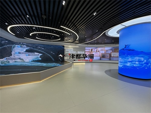 今天分享的是固原水利水电办公楼装修设计实景照片,整体而言,该办公楼空间是银川装修公司津都华丽对“专业行业办公展厅”的优质落地:以极简工业风为基底,用科技载体承载水利水电的专业叙事,在功能实用性与主题表达力之间找到平衡,既展现了行业的硬核科技感,又传递了水利工程的人文价值。材质与细节上,银川装修公司津都华丽的“实用美学”理念贯穿其中:展墙采用模块化金属嵌板,既符合水利展厅的科技质感,又满足内容更新的弹性需求;灯光系统以间接照明为主,环形灯带与嵌入式射灯的组合,既保证空间明亮度,又通过光影层次营造科技氛围;而流线型展陈台的圆角设计、地面的隐形收边工艺,则体现了津都华丽在工业风设计中“细节柔化”的巧思。