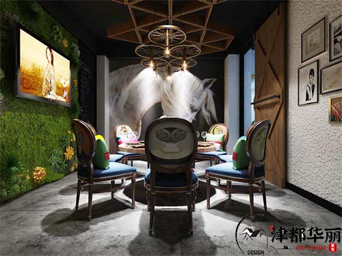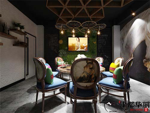 本案是蒙古餐厅装修设计项目,说起蒙古族,很多人就想到了那里的美食、美景以及风俗习惯,的确,蒙古族美食非常的有特色,能让人回味无穷,就像他们的风俗习惯一样,质朴独特。此次的餐厅设计理念就是打造一个典雅时尚,并且展现蒙古自然纯朴的独特风情,为了营造质朴的基础格调,地面、墙面用灰色系的瓷砖或者青砖装饰,搭配清新时尚的造型设计,既展现出了空间的时尚艺术,也能让我们感受到质朴带来的亲切感,空间随处可见的都是蒙古风情元素,非常丰富的绿植装饰,以及草原动物造型和背景,还原了蒙古草原的美好景象,让我们有种身临其境的真实感受。集合了现代的时尚,异域风情的自然豪放,欧式的精致浪漫以及自由发挥的复古文艺,融合不同风格元素的设计,让我们不断的收获惊喜。