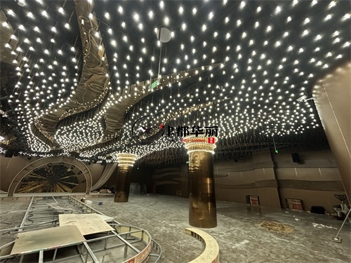 今天分享的是固原姿乐宴会中心中期施工进度。宴会中心的施工工艺相比于其他类型的工装项目是更复杂的,所以设计师一定要对施工人员进行详细的工艺交底,以确保装修出来的实景效果能够贴近设计方案的。目前,宴会中心的各个区域已经大致完工,还剩部分包间的锑台、软装布置没有完成,我们的施工团队也在按照设计图纸以及施工图纸的要求进行工作的安排。在选择宴会中心的装修设计风格上,我们要根据宴会厅的各个包间的风格、参与人群来进行设计。我们通过灵活布局,将传统元素与现代时尚元素巧妙地融合在一起,达到空间开阔、光线柔和、装修精致的目的。