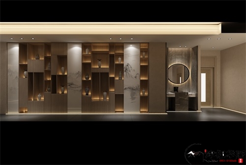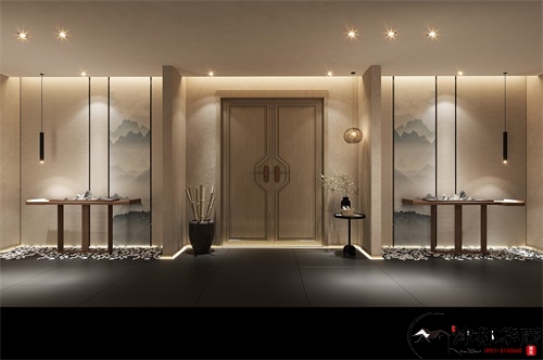 会所的装修风格上选择了轻中式风格,整体颜色搭配上是净而素雅的,搭配简单但国风感十足的装饰画作和绿植花卉,让整体氛围更加有传统感和文化气息。虽然装修装饰上都比较简约、简单,但是整体设计出来的效果却是一个有内涵,有文化韵味,高贵大气的空间,这是我们的设计师凭借个人的专业能力、文化素养,以及投资人对传统文化的喜爱和尊崇结合设计出的空间效果。