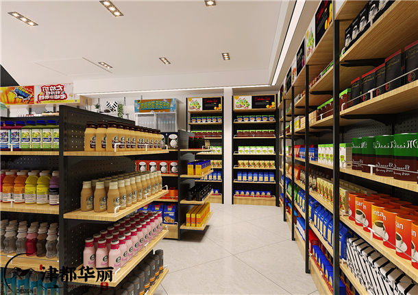 小型超市在一个城市中越来越普遍,在本案中,设计师在内部空间的设计上,偏向于简约实用,白色的地砖不仅易于打理,还看起来更加的明亮洁净,木质板材的墙面让空间更加有质感,提升了空间的档次。超市最注重的是合理的规划空间,更大化的利用好空间,包括收银台的设计和各类商品货架的摆放,货品摆放整齐有序,商品归类清晰合理,更方便购买者去选择,过道的预留空间宽敞充足,保证店内的活动空间不会感觉到拥挤。货架上方的广告设计,简单直观的为顾客展示了部分货品信息,但更多的是在视觉上使空间更加美观,更加的丰富多彩。