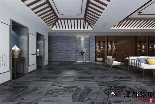 清风古韵,幽静雅致,形容的就是今天的案例设计。大多数的酒庄在空间功能上已经偏向于休闲娱乐,所以在酒庄的装修设计上,风格也是多种多样,在今天的案例中,设计师确定的空间主题风格是将现代简约风格和中式元素相融合,整体空间效果上更加的充满意境。大厅的设计,从吊顶、窗户、家居摆设都用了中式元素的设计,体现了空间的古香古色,到处弥漫着书香雅苑的氛围感,地面和墙面用石材和大理石装饰,又让空间更加的严整大气,同时散发着多种耐人寻味的空间感觉。餐厅休闲区的设计文艺气息更加的浓厚,背景墙和装饰画起到了画龙点睛的作用,将空间装饰的意境十足,安静典雅的空间氛围也让我们更加的舒适和放松。公区、走廊、卫生间的设计简约时尚,且散发着一种幽静、神秘的独特气质。所以整体的设计,更加像是拥有现代时尚感和功能性的古代山庄,带给我们的体验感就是既熟悉,又让我们好奇以及带给我们惊喜。